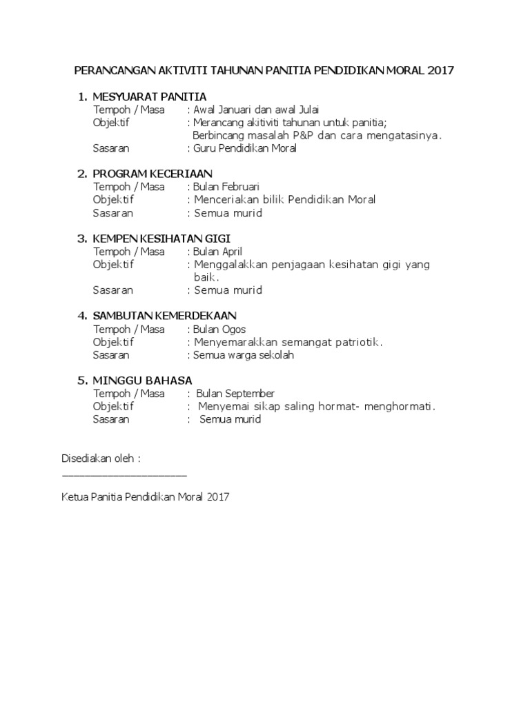 Rancangan Aktiviti Pendidikan Moral Tahun 2017 Pdf